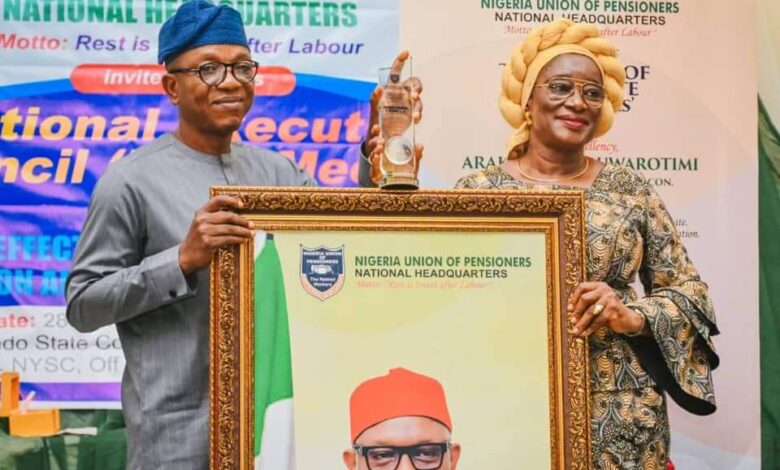 The Nigeria Union of Pensioners (NUP) has honoured the Ondo State Governor, Arakunrin Oluwarotimi Akeredolu,SAN, CON, with an Award of Excellence as the Pillar of Pensioners in the state.