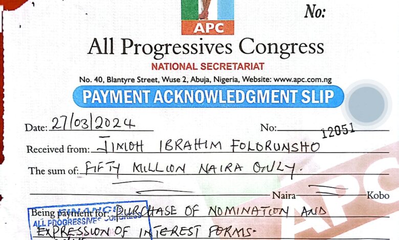 Ondo 2024: Jimoh Ibrahim Picks APC Governorship Nomination Form